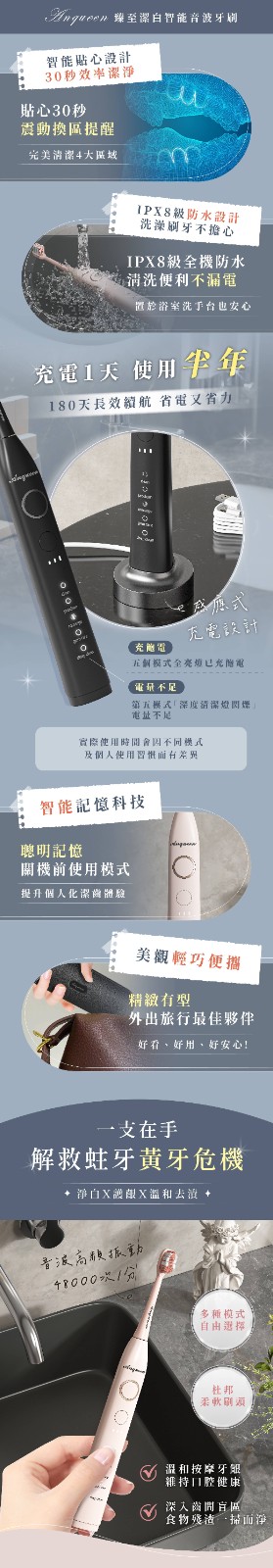 12分鐘前微笑從齒開始!Anqueen安晴臻至潔白智能音波電動牙刷AQ-B101 - 黑色款